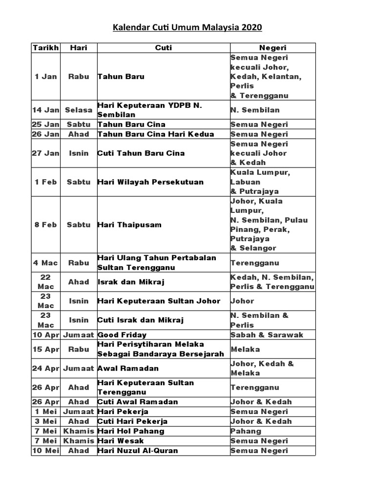 Related : Cuti Umum Malaysia 2020 : We provide the information in the form of pictures for easy viewing..