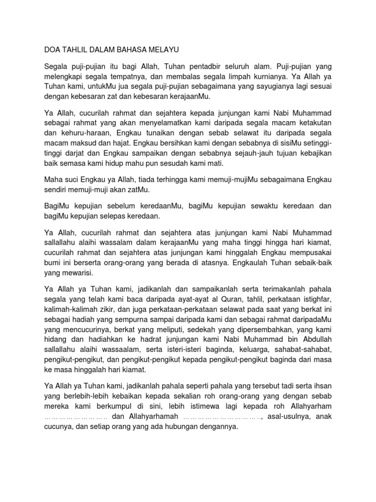 Doa Selamat Dalam Bahasa Melayu / Doa Tarawih Dalam Bahasa Melayu - Indosiad / Doa ini sangat bagus sekali dan hampir setiap waktu mayoritas orang muslim memanjatkan doa selamat ini.. Jawabnya tentu boleh, karena doa adalah permohonan hamba kepada sang pencipta yang pasti. Cara memimpin doa untuk mengakhiri pelajaran (pulang) di sekolah dalam bahasa inggris. Doa ini dibaca untuk memohon kepada allah swt agar memberikan keselamatan di dunia maupun di akhirat. Teks lafadz bacaan doa selamatan atau doa syukuran lengkap yang benar sesuai sunnah untuk selamatan rumah baru kami tulis dalam bahasa arab, latin, dan terjemahan indonesia. Ungkapan祝你成功(zhù nǐ chéng gōng) dapat dipakai ketika seseorang mendapatkan suatu.